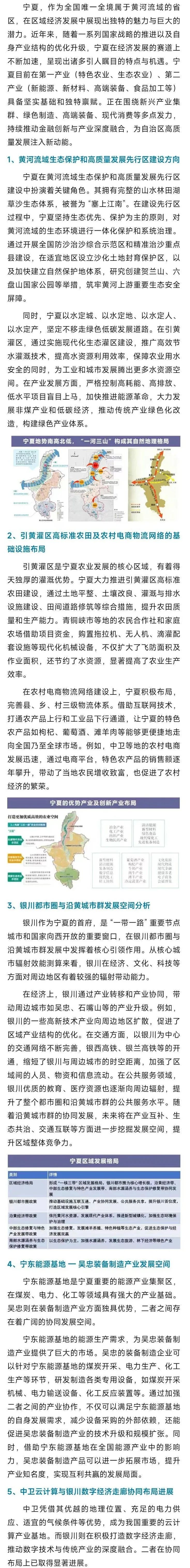 宁夏,作为全国唯一全境属于黄河流域的省区,在区域经济发展中展现出独特的魅力与巨大的潜力。近年来,随着一系列国家战略的推进以及自身产业结构的优化升级,宁夏在经济发展的赛道上不断加速,呈现出诸多引人瞩目的特点与机遇。宁夏目前在第一产业(特色农业、生态农业)、第二产业(新能源、新材料、高端装备、食品加工等)具备坚实基础和独特禀赋。正